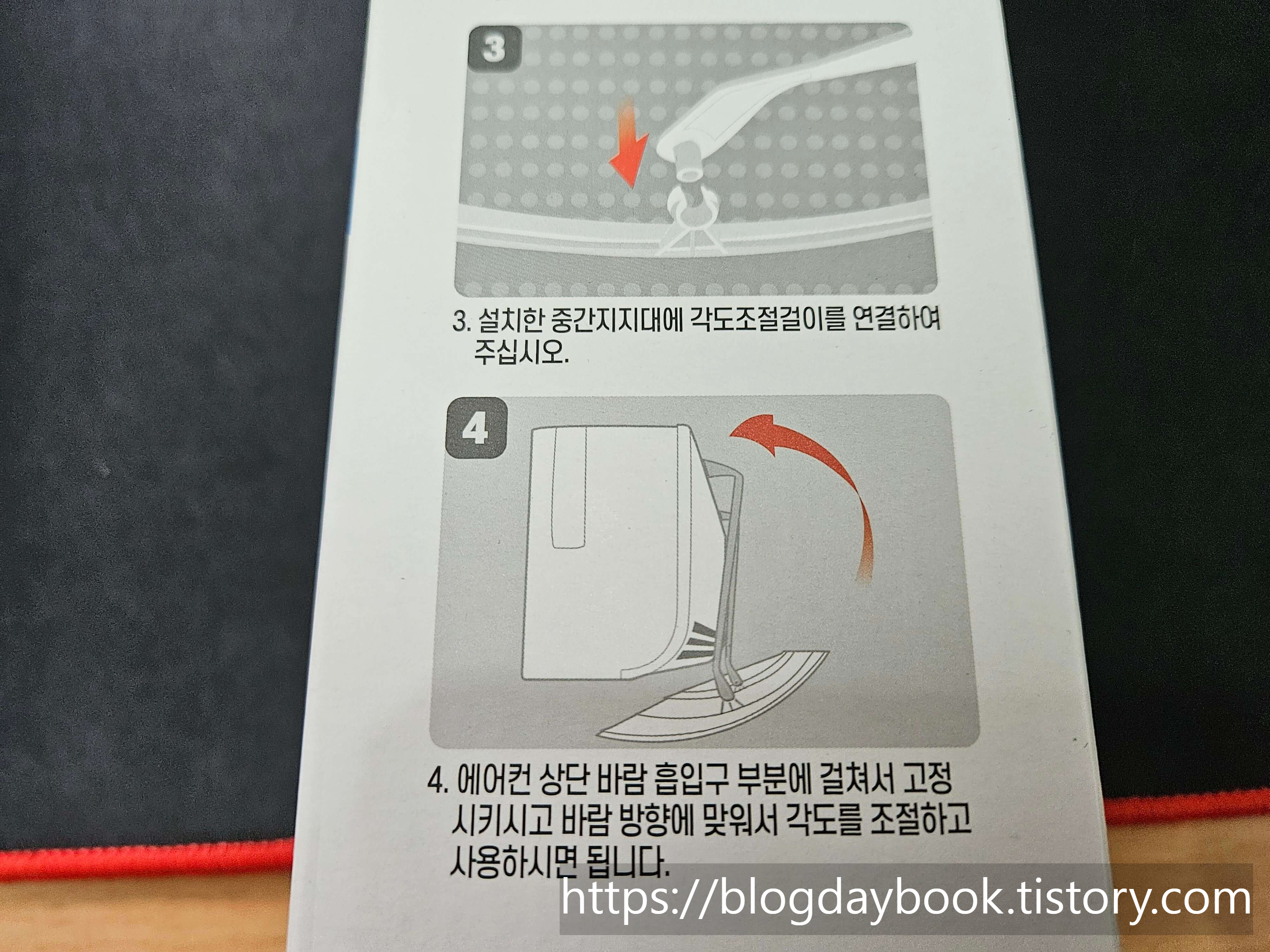 조립이 완성되면 에어컨 상단에 걸어주시면 끝입니다. 저는 설치하는데 10분도 안 걸리고 했는데요. 누구나 쉽게 할 수 있습니다.
