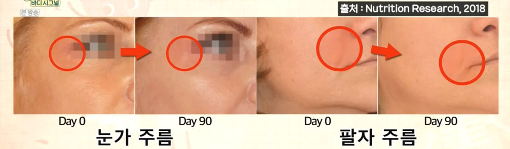 실험을 통해 저분자 피쉬콜라겐이 주름에 도움을 주는 것을 알 수 있다.