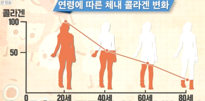 1년에 체내 콜라겐 양 1%씩 감소하고 이 콜라겐 양은 폐경기가 되면 여성호르몬 감소로 콜라겐 양 감소하고 동년배 남성보다 3.9배 피부 노화가 빠르다.