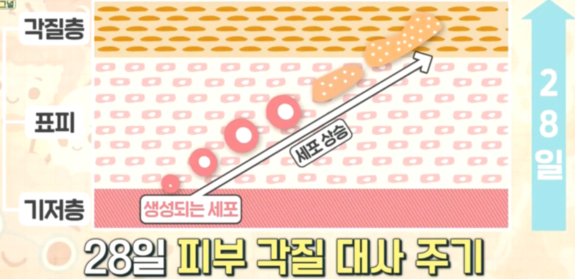 기본적으로 피부가 노화하면 각질이 생기는 데요. 각질 하면 팔꿈치 뒤에 굳은살 같은 걸 생각하는데 이 각질은 모든 피부에서 생산되고 탈락합니다. 일생동안 이주기를 반복합니다.