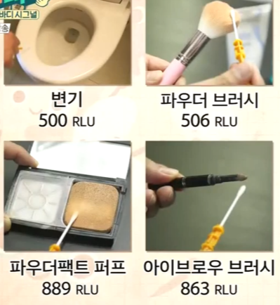 세균수를 비교하면 변기 < 파우더 브러시 < 아이브로우 브러시 < 파우더 팩트 퍼프 순으로 화장품이 변기보다 더 세균이 많은 것을 알 수 있다.