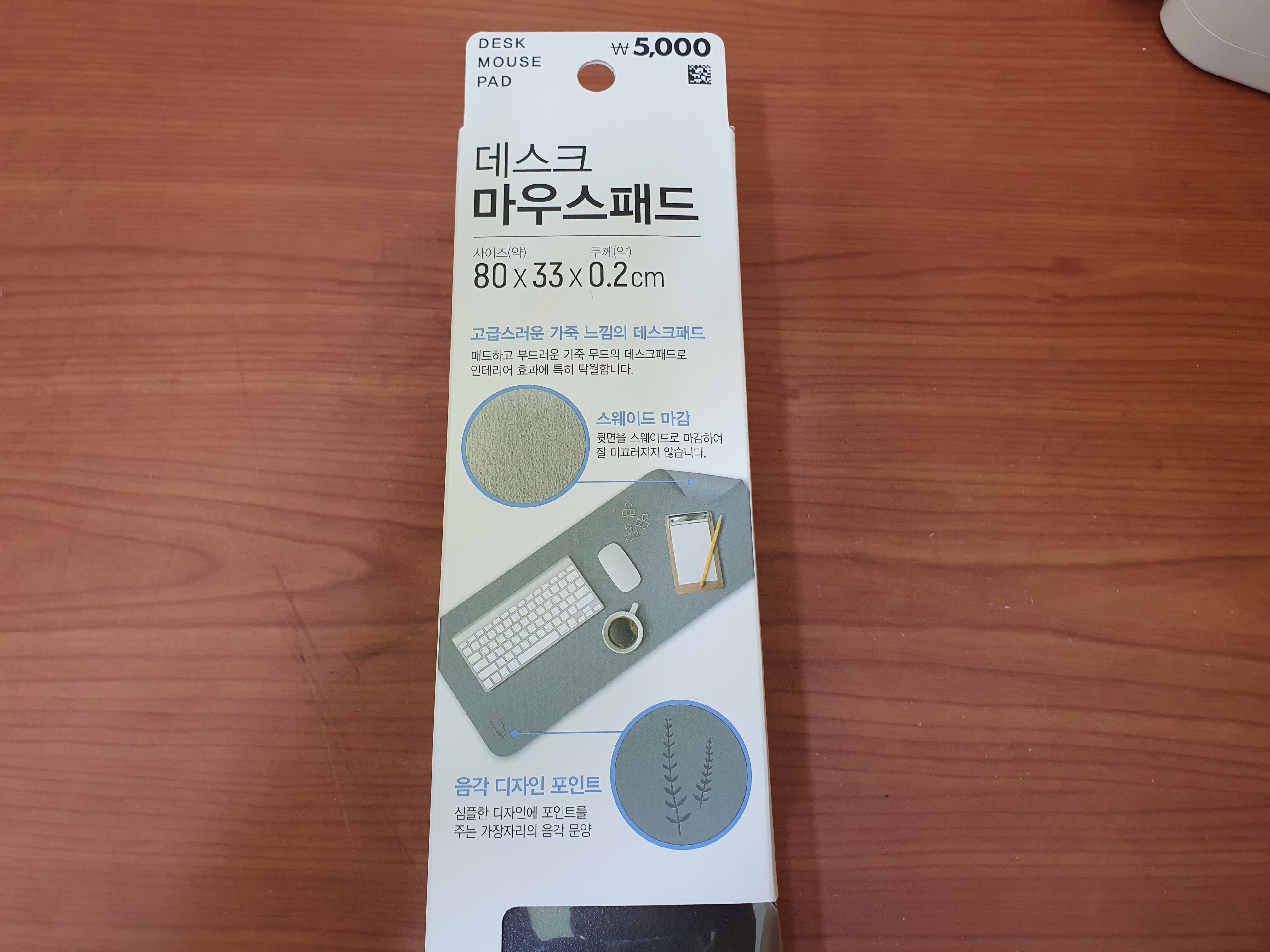 책상 사용할 때 소리랑 흠집이 사용할 때 소리랑 흠집이 생길까 봐 불안한데요. 그래서 이번에 다이소에서 마우스 패드를 구매했습니다. 저는 마우스패드 말고 그냥 책상에 깔기 위해서 구매했는데요. 가격은 5,000원으로 다이소 물건 중에서는 비싼 편입니다. 인터넷에서 구매할려고 보니깐 거의 만원이 넘어서 그냥 다이소에서 구매했습니다.