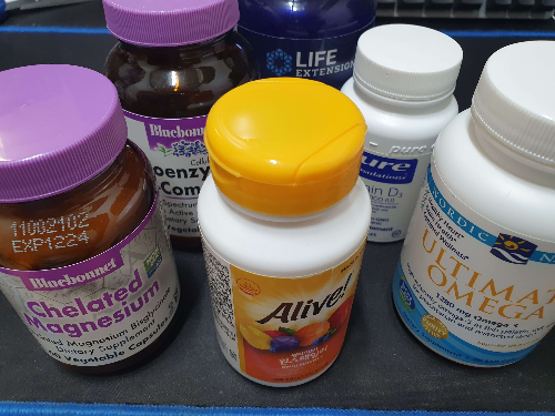 - 아침 식후에 오메가3 한 알, 종합비타민 한알, 칼슘 마그네슘 한알